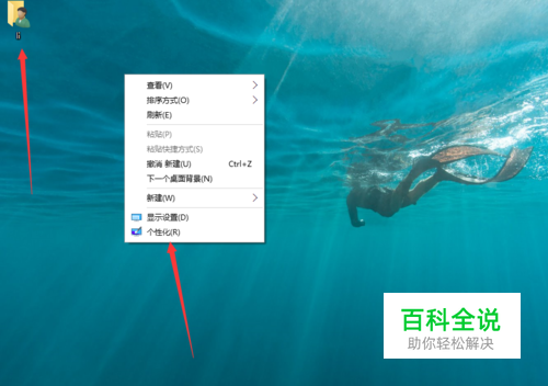 如下图所显示,这里只有一个图标。首先右击桌面-单击个性化。