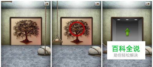 这一关先要用道具,用刀子砍断绳子后,就会发现左边掉下来一个隔板,上面还有一个鸟蛋(应该是鸟蛋吧)。切记,在隔板掉到地上之前拿到鸟蛋,然后放到树中间的鸟窝里,门就开啦。