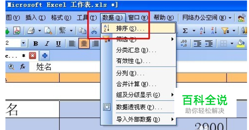 进入数据排序操作页面。如果表格里有合并的单元格一定要先选择数据,然后点击排序。