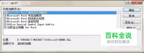 首先打开 Word ,按照“ Office 按钮> Word 选项> 加载项> 转到”的顺序,打开“ COM 加载项”所在窗体。我们可以看到,默认状态下所有项目全部钩选的。