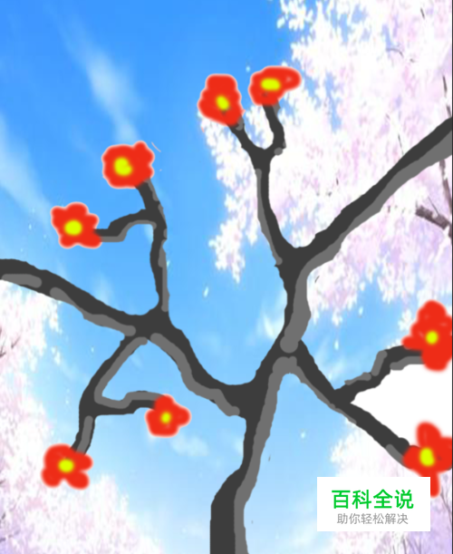 最后画梅花也是用画笔工具,使用柔边类型的画笔在树枝上画,画好之后觉得树枝多了可以利用橡皮擦进行擦除,如果觉得少了点什么,你可以在网上找一些图片充当背景,最终效果图如下: