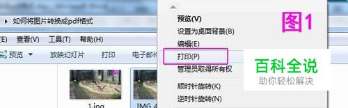2、找到需要转换的图片,然后点击右键,选择“打印”,如图1所示。