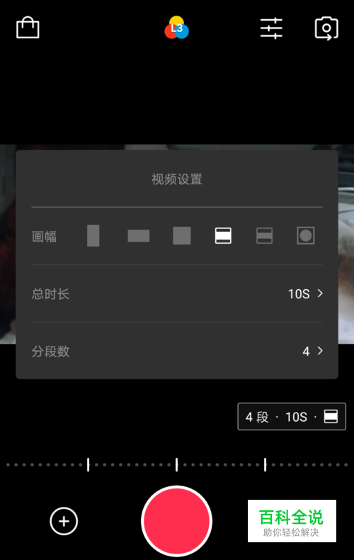 进入到VUE视频了,中间按钮是拍摄视频的,是分小节拍摄的,初始是4小节10秒的,可以自己点击【4节10s】这里的字样进去编辑修改这个数据。点击拍摄好的小节可以删除的哦。