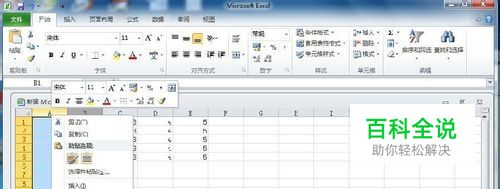 运行Excel 2010,选择要隐藏的列,如A、B列,在“开始”功能区的 单元格组单击“格式”按钮,打开的下拉菜单指向 可见性的“隐藏和取消隐藏”,在下一级菜单中单击“隐藏列”命令 注:使用同样的步骤方法也可以达到隐藏行、工作表的目的