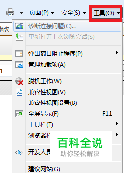 打开浏览器,在右上方找到工具,如图所示 注意:本文以IE为例说明