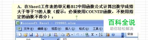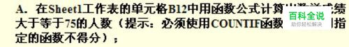 小编在这里提供给大家相似的题目,希望大家认真琢磨喔~ 该图是题目: 在该工作表的单元格B12中 用函数公式计算出数学成绩大于等于75的人数 必须使用COUNTIF函数 小编这里幸好指引给大家要用的函数。 在这里解释一下COUNTIF函数 这个函数是组合函数 count 是计算 if 是如果 意思是这个函数是 有条件地去计算一些东西。