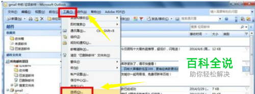 启动你的outlook客户端,点击菜单栏的 工具-- 选项,如下图所示!