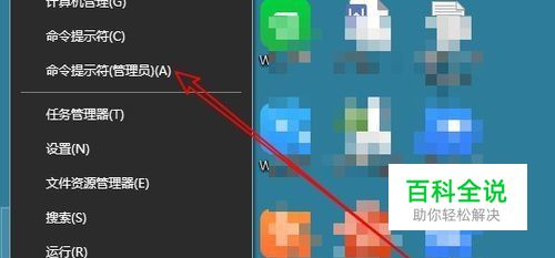 首先在桌面右键点击左下角的Windows徽标键,然后在打开的菜单中点击“命令提示符(管理员)”菜单项。