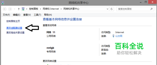 在新窗口中的左上方找到“更改适配器设置”,点击