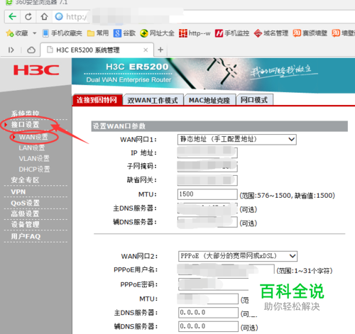 依次点开 接口设置--wan设置