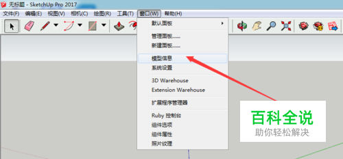 打开sketchup软件,点击菜单栏窗口命令。