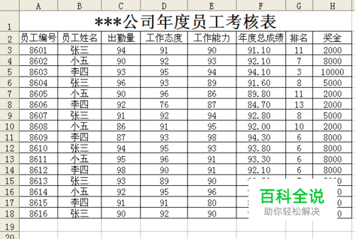 表格的下角任一单元格里,处 输入排名的名次和奖励奖金金额。