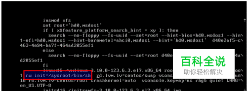 按向下的箭头,找到fi linux16 /vmlinuz-3.10.0-123.6.3.el7.x86_64 root=/dev/Mapper/centos-root ro 找到该ro,将该ro换成rw init = /sysroot/bin/sh