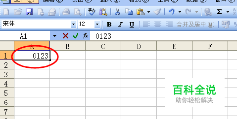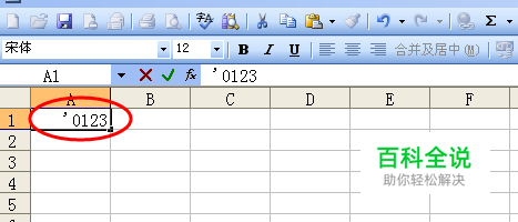 第一种方法,在输入数字前,先输入单引号 ’,再输入数字,这时就会出现0123数字;
