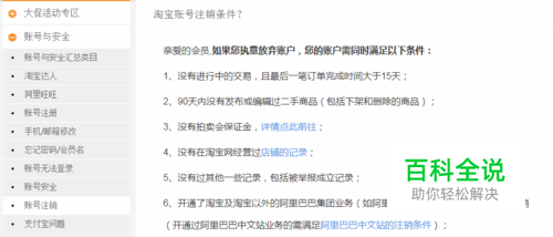 第一步、首先大家要熟悉下注销淘宝账号的条件,如下图所示:
