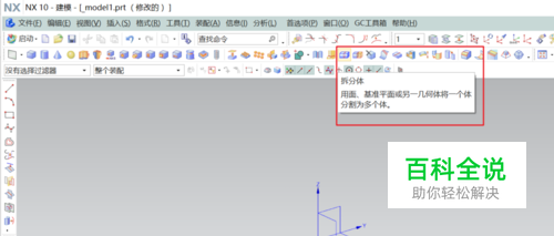 拆分体是在对话框中完成的,它的步骤也只有二步:一、选择要拆分的体,二、指定拆分的平面。