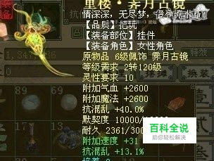 杀塔的时候我选择的是这样的一个项链,抗鬼火,加敏、加根骨、加灵性的项链!这种项链也比较多见!而且价格相对便宜!在我进战斗血达到7W抗雷法和鬼火都达到70的时候,基本上第一回合是可以站住脚的。只要盘上,后面也就不用怕出不了手!