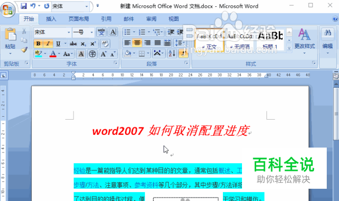 word2007如何取消配置进度