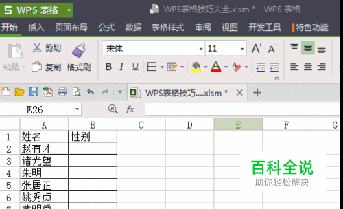 WPS表格怎么快速输入男女性别,或红男绿女