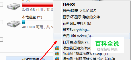 将移动硬盘插入电脑,打开计算机的资源管理器,鼠标右键点击移动硬盘,选择启用bitlocker。