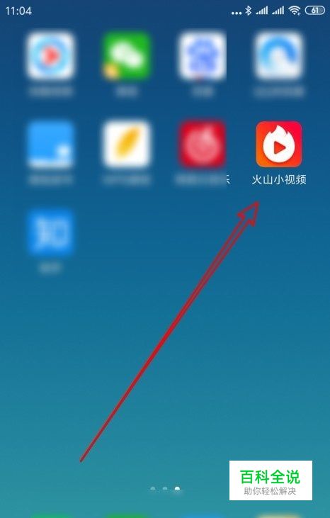 在小米手机上左右的滑动屏幕,找到安装好的“火山小视频”的图标。
