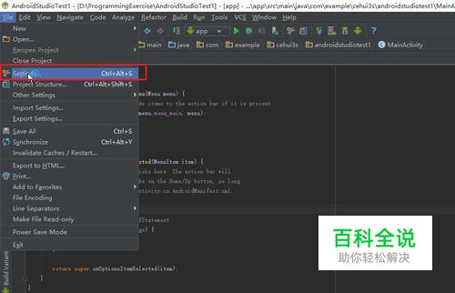 选择“File”菜单栏中的“Settings”选项,打开“Settings”窗体。
