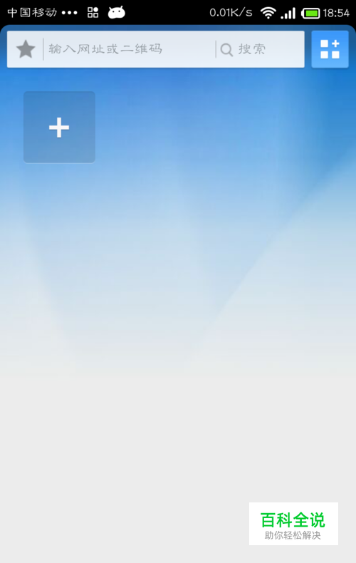 打开UC浏览器,然后点击浏览器桌面的“+”号。