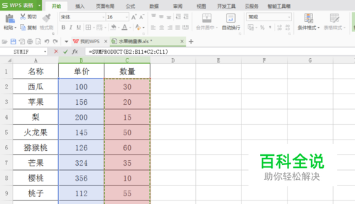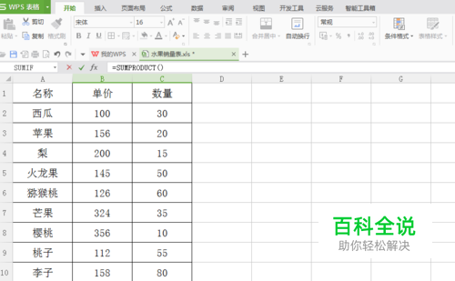 在总金额单元格输入公式“=SUMPRODUCT()”;