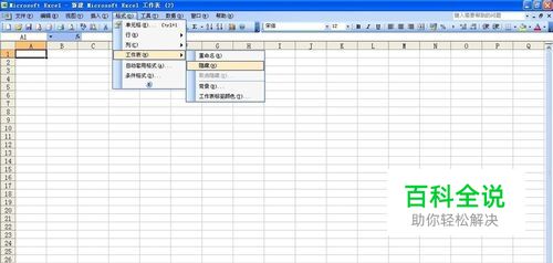 接下来我们再把Sheet2工作表显现出来。选择菜单栏上的“格式—工作表—取消隐藏”命令
