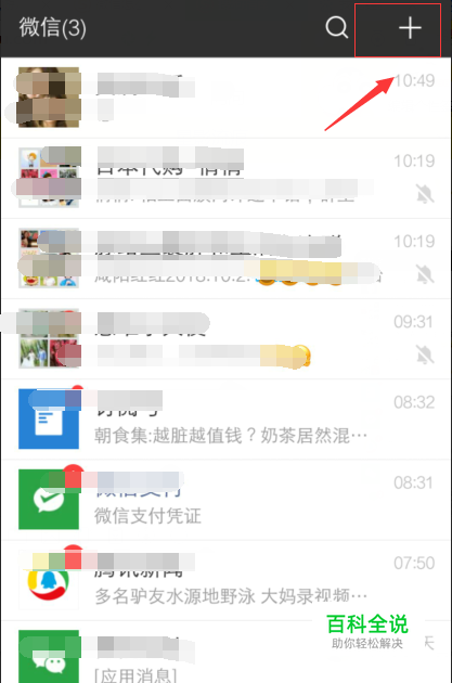 进入到个人微信之后,点击右上角“+”如下图;