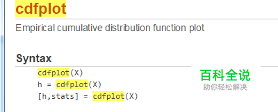首先,介绍一下我们需要使用的绘制图形的函数cdfplot的使用语法,如图所示: