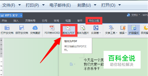在【特色功能】菜单栏的工具中单击【输出为PDF】。