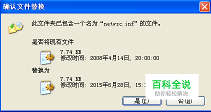 小编这里以 netwzc.inf服务为例(Wireless Zero Configuration),将复制的 netwzc.inf文件存放到C:\Windows\inf路径下,选择 覆盖之前文件