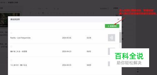 上传完成后就是如何插入我们想要添加的文件,具体步骤如下: 1、在编辑框中再次点击“音频” 2、选定我们已上传的音乐 3、完美结束