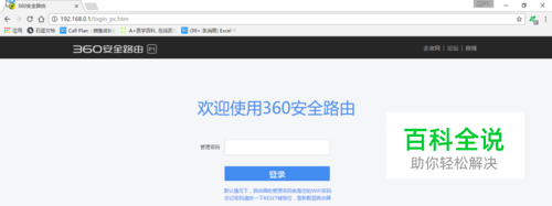 在浏览器的地址栏中填入192.168.0.1,回车,进入360浏览器的后台登录界面,输入登录密码。