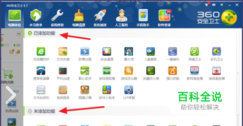 如果右侧没有的话,点击【功能大全】后面的更多 在已添加功能或者未添加功能下查找