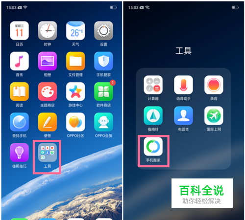 然后在R11s里通过【工具】--【手机搬家】--选择【这是旧手机】。