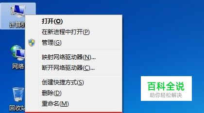桌面选择计算机图标,点击鼠标右键菜单:属性。