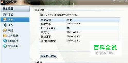在qq系统设置 ---基本设置----热键