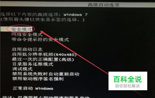 启动界面中,选择进入安全模式。
