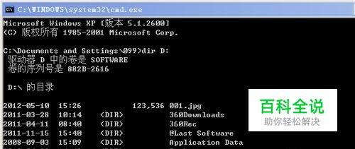 然后我们再运行CMD,输入dir D:看看结果,这时文件名就显示在前面了。