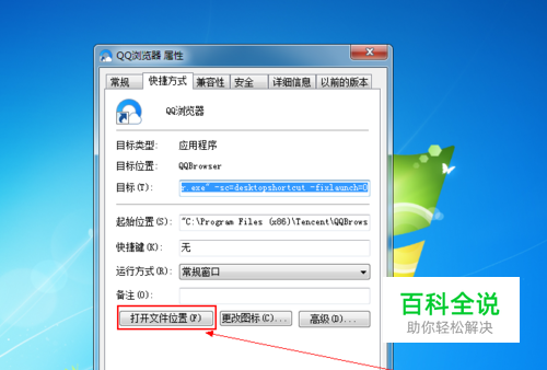如图所示,在弹出的对话框中,我们点击箭头所指的“打开文件位置(F)”这一项。