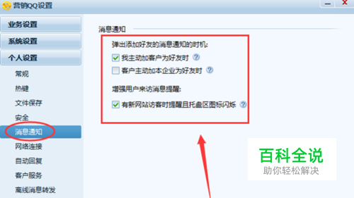 设置好友提醒 对于自动接入添加好友或关注的客户,把消息通知都勾选。尽快答复添加对方
