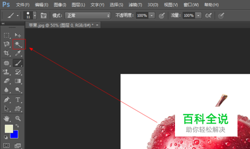 如图所示,我们点击箭头所指的photoshop软件图标,打开photoshop软件。