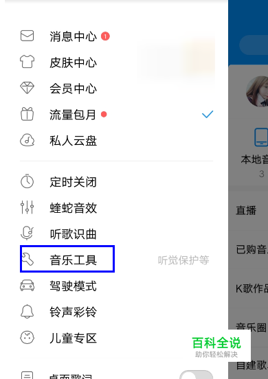 打开手机中的酷狗音乐APP,进入首页之后往左滑动页面,找到音乐工具点击一下