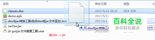 下载工具 http://git.oschina.net/scimence/JarDex_tool/raw/20170513/files/dex与jar转换工具.zip