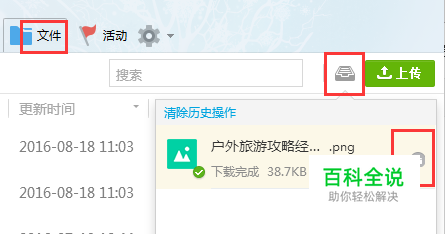 点击右上角上传旁边的按钮出现下拉就看到文件名后图标就能打开文件。