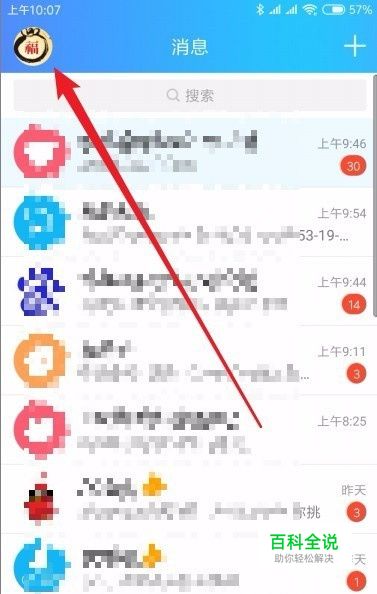 在手机上打开QQ聊天软件后,我们点击左上角的“个人头像”图标。
