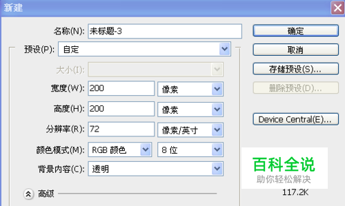 首先新建一个200*200像素的的透明画布。
