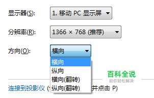在屏幕分辨率设置窗中,找到“方向”,点击下拉,选择自己想要的显示的风格。